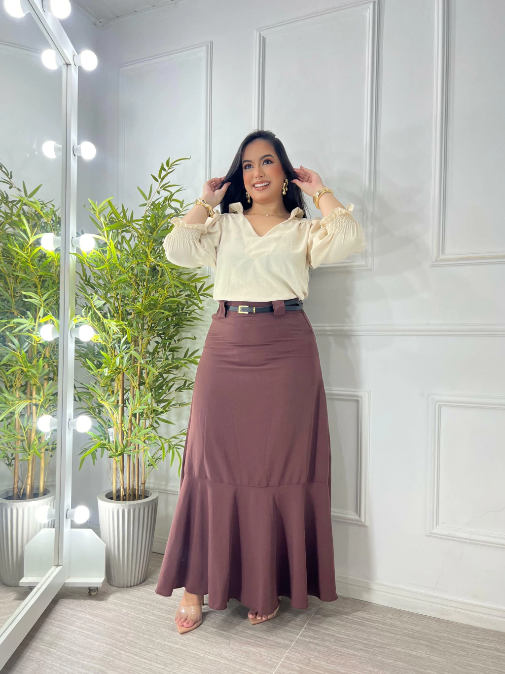 Transforme seu estilo e eleve seu guarda-roupa com essa peça indispensável! Adicione a Saia Longa na Alfaitaria G ao seu carrinho e sinta-se deslumbrante em qualquer evento.